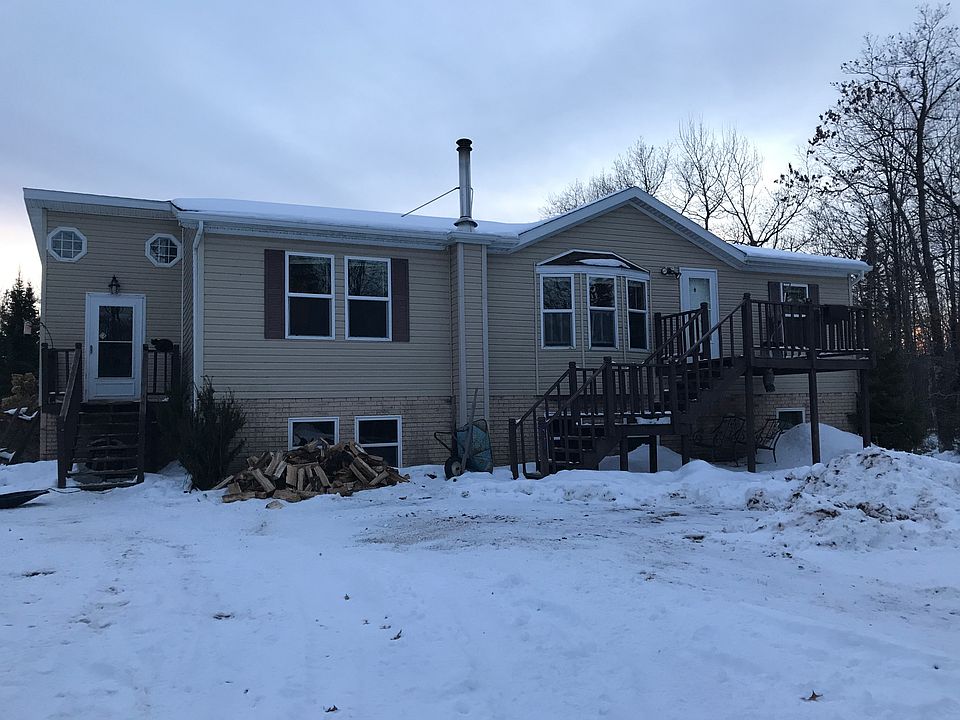 Single Family Home for sale by owner in Bennett, WI 54873. Live well amidst some of the finest land and wildlife in the area! This raised ranch style home is surrounded by 15 acres of park-like grounds, a pond, and forest land. Enjoy the best of country life, while just about six miles from Solon Springs, and approximately 30 minutes from Duluth/Superior. The kitchen is well-designed for efficient working, and has plenty of cabinet space, plus a breakfast bar. The large dining area has glass doors leading to the deck. The 15 x 20 deck is perfect for outdoor dining and entertaining, with ample room for the barbeque, furniture, and friends and family! There are laundry hook-ups on the main floor and the lower level how convenient! The enclosed front porch makes a great mud room, with space for storage. The large living room has the desirable details of a bay window and cathedral ceiling that create a light and spacious atmosphere. Creative palette throughout the home is ready and beautiful. Questions please call 218-428-6109.