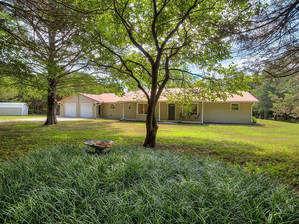 Modern Style Meets Country Living on 3.5 Private Acres Welcome to 8750 Hartman Rd., a fully renovated home nestled on a stunning 3.5 acre lot in Noble. Surrounded by towering mature trees and tucked away for privacy, this property offers tranquility, space, and high-end modern finishes—all just minutes from a rapidly growing (commercial and residential) Noble. Inside, you're immediately drawn to the expansive 12-foot sliding glass doors that open to a serene backyard with open views of a wildlife-filled pond, fed by a creek, and a beautiful mature pecan tree as its centerpiece. Nearly every surface of this home has been updated. Enjoy new wood floors throughout, level 5 smooth walls in the main areas and primary suite, brand-new windows, fresh interior and exterior paint, new doors, trim, baseboards, toilets, and electrical outlets and lighting switches. The custom kitchen features floating acacia shelves, a large 3x8 butcher block island, tile backsplash from counter to ceiling, a farmhouse sink, new lighting, and new stainless steel appliances including oven, dishwasher, refrigerator, and vent hood. Both bathrooms include new countertops, sinks, toilets, plumbing fixtures, and modern design details. The oversized primary suite is a true retreat, with a massive walk-in closet accessed by a custom barn door and a beautifully remodeled en-suite bathroom. New ceiling fans provide comfort throughout, and the large covered back porch is perfect for morning coffee or relaxing evenings while enjoying nature. Located just 9 minutes to downtown Noble, 15 minutes to Lake Thunderbird, and 20 minutes to Norman and the University of Oklahoma. This home offers the best of both worlds—modern living with the peace and beauty of the country. A must-see property and true labor of love! Seller will consider selling an additional 2.5 acer lot adjacent to the property.
