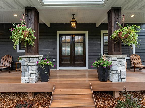 Upstairs, enjoy sweeping views from every room, a laundry room, and a luxurious primary suite complete with a soaking tub, dual vanities, makeup station, tiled shower, and an oversized walk-in closet connected to the laundry. The heated, oversized 3-car garage offers plenty of storage and an electric vehicle (EV) charger. For your outdoor pleasure, enjoy the maintenance-free deck that overlooks your serene 5-acre setting. Recently hydro-seeded (2024), this property is ready to grow with you.