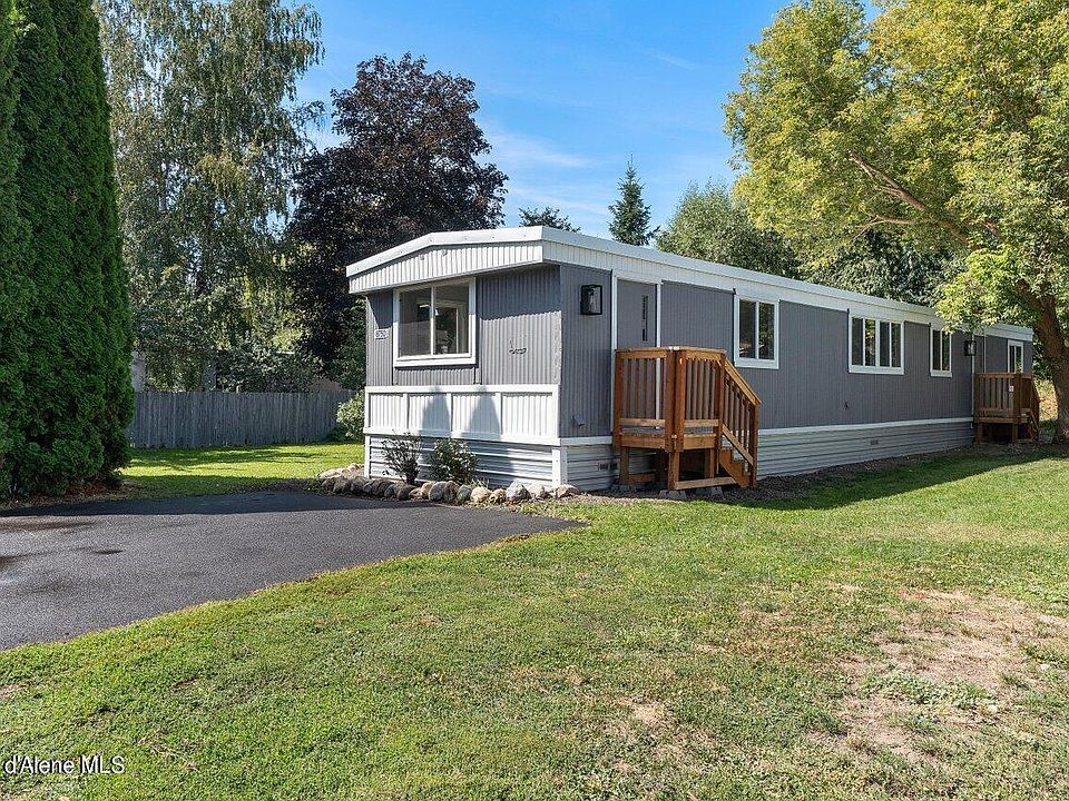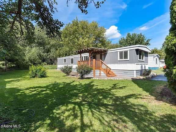 TURN-KEY ALL-AGE MANUFACTURED HOME IN RATHDRUM! 2 Bedroom 1 bath on leased land in a neighborhood that boasts a charming park equipped with a playground, swing sets, and a basketball court! This completely remodeled single-wide is located in Rathdrum walking distance from restaurants and downtown. All New roof, water heater, bathroom, flooring, kitchen appliances, wall texture and paint, skirting, and more! Space rent is $550 includes W/S/G.