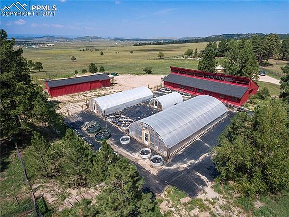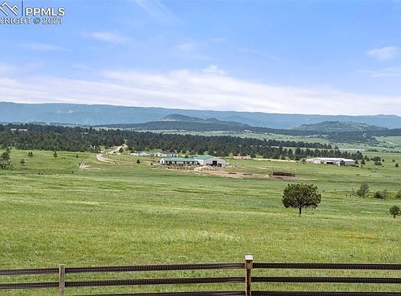 Quintessential Colorado Front Range Ranch! Rarely does an opportunity present itself to purchase a private yet close-in, move-in ready, one of a kind estate nestled on 59 treed and meadow acres with an expansive main residence, secondary guest house, 11 stall barn w/ apartment, workshop, RV garage. Sweeping unobstructed views of the front range, Pikes Peak and Mt Evans. The ranch is minutes to I-25 and HWY 83, 15 minutes to Colorado Springs, 40 minutes to Denver. The main residence has been remodeled with high end finishes, impeccable craftsmanship and uncompromising attention to detail. Substantial outdoor living space including an enclosed courtyard with stacked stone fireplace and custom iron work by a local artist, flagstone patio and lush gardens, 5 decks with lighting & exposed timber beams. All decks are high end Brazilian hardwood decks. Gourmet kitchen with granite counters, under cabinet lighting, hardwood floors, double sinks, Sub-Zero refrigerator, cherry cabinetry, Jenn Air convection double oven, warming drawer, huge garden window and a large butlers pantry with private deck. Luxurious master retreat w/ soaring vaulted tongue & groove wood ceilings, sitting area, private deck, walk-in closet, steam shower, dry sauna, tub, double vanity with marble counters. The sunken great room is perfect for entertaining and features gorgeous views of the front range, natural stone wood burning fireplace, vaulted ceilings, a wall of architectural windows with access to the large deck. Secondary main level suite w/ private deck, hardwood floors, built-ins and a large bath. Finished walk-out lower level with exercise room, two additional bedrooms, a full bath, a huge family room w/ wood ceilings, walk-out to patio, fireplace and stone surround. The guest home features 3 beds 2 baths. 11 stall barn w/auto water, gas heat, electric, concrete floors, tack room, water heater and laundry. Multiple fenced pastures. Whole house propane generator. Central air conditioning.