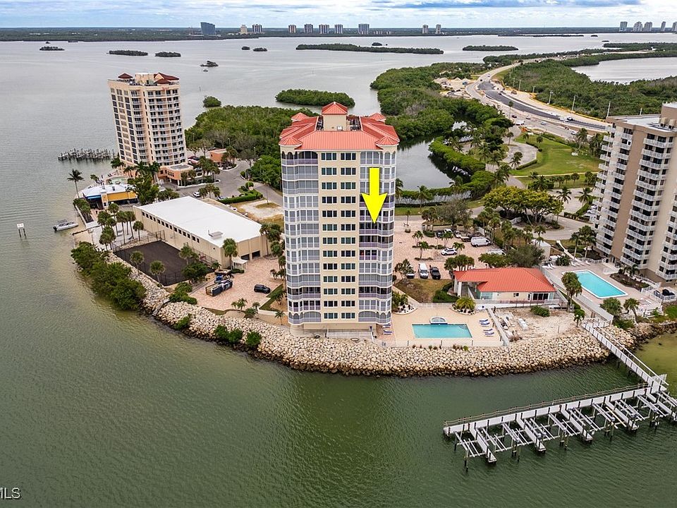 Stunning 8th-floor condo with panoramic views of the Intracoastal Waterway and Gulf beaches. This beautifully remodeled and professionally designed 2-bedroom, 2-bath residence with a den offers breathtaking sunsets from every room. The open layout showcases elegant finishes and coastal-inspired décor, creating a light, inviting space throughout. Relax on your private porch while watching dolphins and manatees in the water below. The community features a pool, hot tub, and tennis/pickleball court. A new clubhouse with a fitness center is under construction and scheduled for completion within the next three months. Boat docks are available for rent when offered. Covered assigned parking (1 stall) is included! The building has a new roof and all new impact glass windows and sliders.