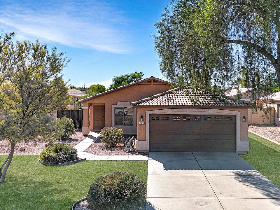 Step outside to a backyard made for enjoying Arizona living — complete with a Pebble Tec pool with waterfall feature, lush greenery, and a covered patio perfect for relaxing or entertaining. The ground caretaker system is fully operational, making yard maintenance a breeze. You'll also love the two spacious side yards with RV gate access, offering great flexibility and extra space.