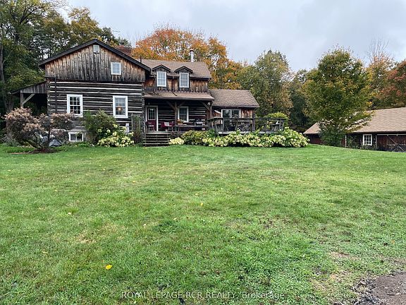 Your search for simple peace just might be over when you visit this 19.3 acre property. First time offered for sale since 1986, this Ottawa Valley log home was reconstructed here in 1979 and has been a much-loved homestead for the Hill family since '86. A warm and inviting home with lots of room for a growing family offering a unique (and perhaps quirky) original upstairs floor plan. The land is a beautiful mix of hardwood forest, open meadow, ravines and walking trails bordered on the north by the 93 acre Dufferin County Forest Aiken Tract providing even more quiet privacy. You couldn't ask for a better location, close to a paved road with easy access to Airport Road for commuting and only 22 minutes to Orangeville. Property under NVCA jurisdiction with a Managed Forest Plan.