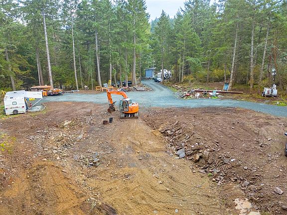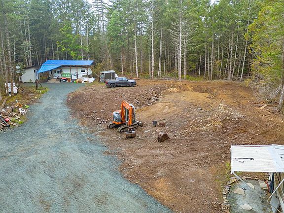 Country living at its best! Enjoy peace and privacy on this nearly 2-acre parcel located just 8 minutes from Chemainus and 15 minutes from Duncan. Set in a quiet cul-de-sac, the lot offers a natural bench toward the back—an ideal building site with a drilled well already in place. A wide driveway leads to an RV parking area with power and a finished outbuilding serving as a laundry room. Another finished structure houses the well pump and filtration system, both matching in siding and trim. 200-amp hydro service is installed with underground lines to the well shack. The home site has been excavated and is ready for concrete forms, with the septic field area graded and prepped. Engineered plans for a stunning 3,740 sq.ft. residence are included—ready for your dream build in a peaceful rural setting just minutes from town conveniences!