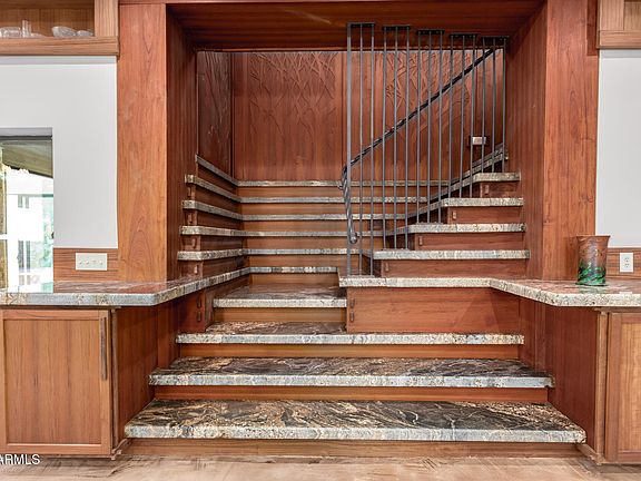 Some of the most breathtaking views and iconic Arizona sunsets in the valley! Sitting on almost 2 ac this residence was thoughtfully crafted by the artist/owner beginning in 2011. The 2500+ sf addition is seamlessly joined with the 2357 sf original ranch home showcasing rich teakwood, granite, and cedar. Teak cabinetry, walls, and flooring create a warm, elegant atmosphere. Hand-painted desert landscapes and handcrafted solid teak doors add unique charm, while steel and glass exterior doors (9 total) offer security and style. 6 car garages with room for 10 adds to this unique property. An enclosed vestibule opens to a tranquil courtyard with natural stone waterfalls. Inside, the expansive great room and kitchen flow beautifully, with a secondary bedroom and full bath completing the space