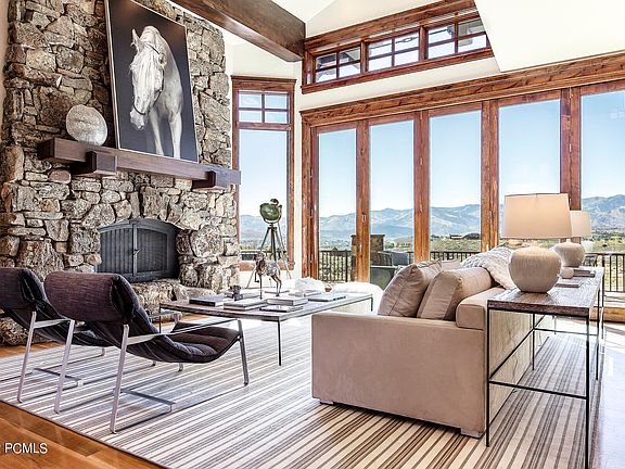 Brilliantly designed inside and out, this modern ranch sanctuary is perfectly situated on 15.88 acres with views looking straight out towards the Glenwild Golf Course and all 3 of Park City's majestic ski hills. This stylish, bright and incredibly spacious custom residence has all new interior furnishings and features a separate barn with a guest apartment. Just around the bend from the back gate of Glenwild and located in Goshawk Ranch, some of Utah's most panoramic vistas land at this remarkable equestrian property. Private & protected with an entrance gate, this luxurious home was designed by Michael Upwall and boasts elevated architectural details & finishes throughout; magnificent walls of windows with views at every turn, vaulted ceilings, brilliant beams, stone fireplaces, clever fixtures, a dramatic sweeping staircase to name a few. The main residence features a thoughtful layout designed with spaces that truly feel unique, individual and authentic. With a myriad of indoor and outdoor entertaining areas, an impressive open chef's kitchen, circular dining area, striking library, hearth room and plenty of gracious bedroom suites, this home flows seamlessly. The fabulous contemporary barn offers a chic and fully equipped guest apartment along with 2 horse stalls and additional parking for ATVs, cars and toys. The at-home amenities include a gym, game room, wine cellar, premier wet bar, putting green, in-ground trampoline, hot tub, fire pit, outdoor covered media terrace, Lutron QS system and a massive dog run. Carefully chosen landscaping paired with wide open pastoral fields, a bubbling stream, hiking/biking/horse trails and a heated driveway with motor court complement this year round, idyllic Park City retreat. Additional amenities are available by joining the Glenwild Golf Club by separate agreement.