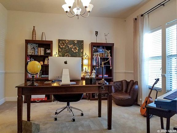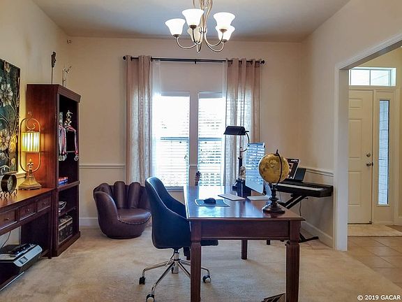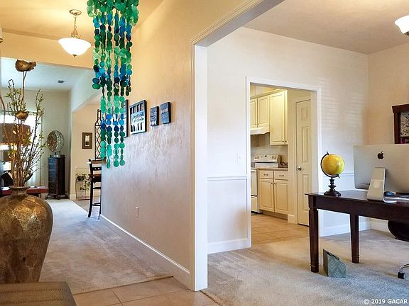Well-maintained & spacious in Willow Oak! 3/2 with upstairs bonus backing to a large green space and just one adjoining home. This home features 9' ceilings, ventless fireplace, tankless gas water heater and large lanai with wood look tile. Custom kitchen with 42" upper cabinets, pantry and elevated breakfast bar opening to the large eat-in kitchen and living room. Formal dining room off foyer, currently used as an office. Master suite with walk-in closet, tray ceiling and separate access to lanai. Wash tub and folding area in laundry room leading out to garage. Close to UF/Shands, I-75 and the conveniences of Archer Rd.