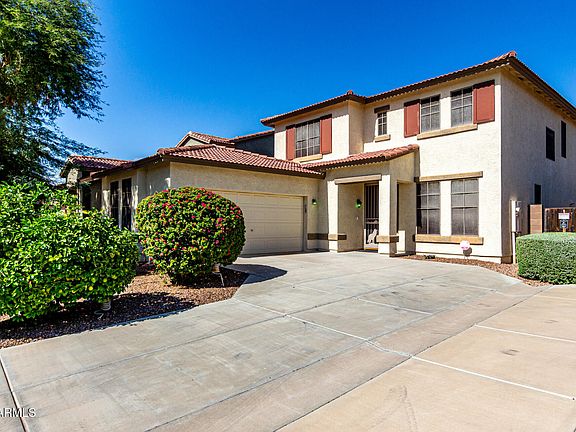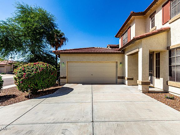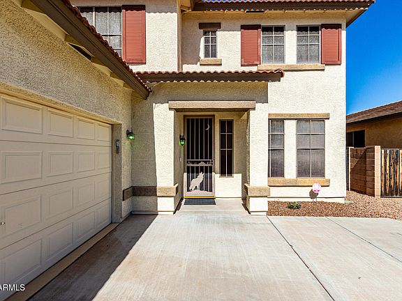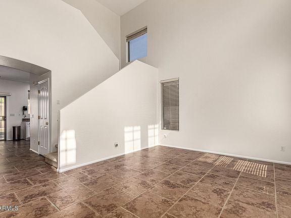 Stake your claim on this move in ready 3-bedroom, 2.5-bathroom home with a den in Peoria's Sky View Place. With 1,849 sq ft of living space freshly painted, it offers both comfort and convenience. Soaring ceilings in the living room flow to the open kitchen and family room. The kitchen features stainless steel appliances, including a brand new range, and ample cabinetry for easy meal preparation. Three bedrooms plus a den, which can easily be converted to fourth bedroom, provide room for a growing family. The backyard with covered patio is perfect for relaxing or entertaining. Situated in the heart of Peoria, this home is conveniently located near Loop 101 making it easy to get to Westgate or Arrowhead Towne Center, offering a wide variety of shopping, dining, and entertainment options.
