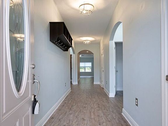 Beautiful brick 4/2 in the Berkshire Estates subdivision off of Gulf Beach Hwy. The split floor plan is perfectly laid out for everyone to enjoy. Trey ceilings in the living room. Engineered wood-look vinyl plank flooring throughout. The large kitchen features recessed lights, black appliances, walk-in corner pantry, and large center island with breakfast bar. The kitchen overlooks the great room and dining area that opens to your screened patio. The spacious primary bedroom has a trey ceiling, and the bathroom has double vanities, garden tub with acrylic window for lots of natural light, separate shower, private water closet, and a spacious walk-in closet. There are three spacious guest bedrooms and inside laundry room with washer & dryer (offered as-is). It has a good-sized fenced-in backyard with a nice pergola to enjoy. There are privacy fences to the left and right, but it has open fencing along the back for you to enjoy the wooded scenic view. The home has several smart features including alarm system and video doorbell. Plus solar panels to keep power bills to a minimum!