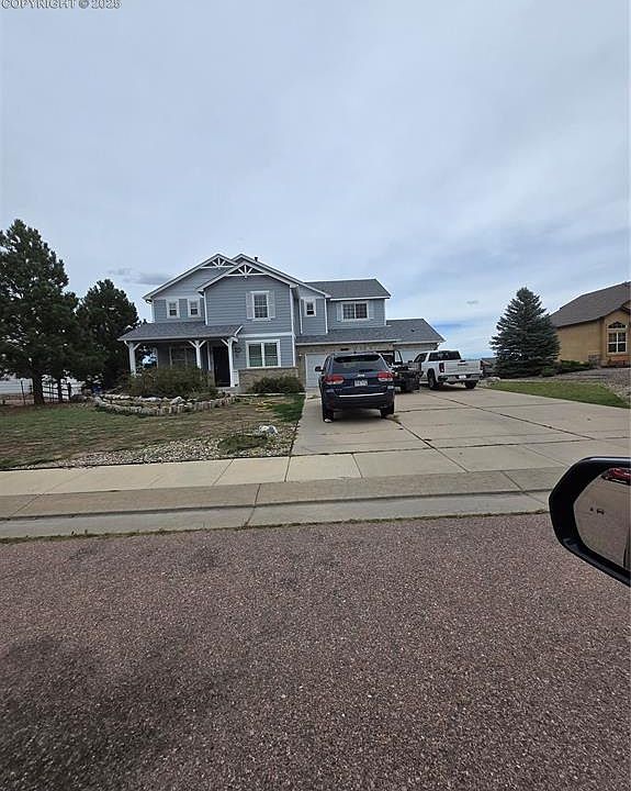 Welcome to this Woodmen Hills 2-story home on quiet cul-de-sac! Enjoy the beautifully landscaped front yard and water feature from spacious porch. Walk into an enormous living space with high ceilings that could be perfect for a formal dining area or extra living room. The front bonus room with french doors makes an ideal office or sitting room.The kitchen offers plenty of cabinets and counter space, double ovens, hardwood floors and lovely breakfast nook. The family room off kitchen has a gas fireplace for cozy Colorado winters. The spacious Master Suite is complete with 5-piece bath, sitting area, walk-in closet and lots of natural light! Loft on upper level provides an additional living area perfect for a multi-gen household or simply more space to enjoy. Convenient upstairs laundry room with sink makes laundry day a breeze. Full walk-out Basement is partially framed The huge fenced back yard has patio with custom pavers, fire pit and upper deck for BBQ's, family time and entertaining. Large 4-car tandem garage offers plenty of room for vehicles, tools and toys! You don't want to miss this Woodmen Hills gem! Located near parks, trails, schools, the golf course and two community recreation centers with extensive amenities.