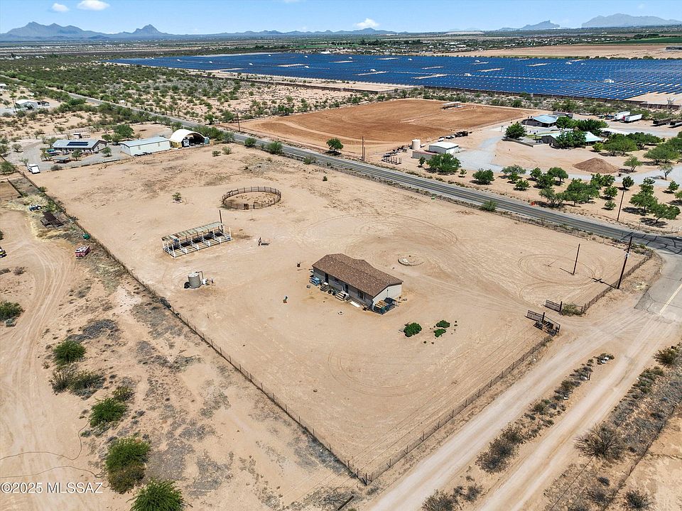 Endless possibilities await on this rare 4.55-acre horse ranch in a prime Marana location This north-facing corner lot offers a private well, newer roof and just one mile from Marana High School! The 3-bed, 2-bath 2004 manufactured home features 1,624 sq ft of living space, including a spacious living room, open-concept kitchen with island and ample cabinetry, dining area, family room, and separate laundry with washer/dryer. Enjoy 5 versatile horse stalls or carport bays, 220-amp plug-in, updated A/C, full perimeter fencing, and paved road access. A must-see for those seeking space, functionality, and rural charm that this equestrian‑friendly property offers. The Southerly fence line is slightly in the south property owners property.