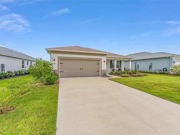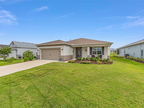 EXTENDED GARAGE! EXTENDED LANAI! Welcome to this beautifully upgraded Wisteria model Smart Home in the desirable community of Weybourne Landing at On Top of the World. Ideally situated on a lot with extra green space, this home offers three bedrooms, two full bathrooms, and a two-car garage with a four-foot extension and epoxy floors. With over $77,000 in builder upgrades and additional after-market enhancements, this home is move-in ready and designed for both comfort and style. Step inside to find luxury vinyl plank flooring throughout, quartz countertops in both the kitchen and bathrooms, and a gourmet kitchen featuring upgraded cabinetry with dovetail drawers, soft-close doors, pull-outs, a lazy Susan, a wine rack, glass tile backsplash, and stainless-steel appliances. The spacious primary suite provides a spa-like retreat with custom mirrors, a frameless glass shower, and upgraded tile finishes. The extended covered lanai and additional outdoor paver patio create the perfect outdoor living space, while the laundry room is equipped with built-in cabinets and a utility sink for added convenience. Other features include an upgraded front door, two solar tubes that bring in natural light, a water softener system, and a collection of smart home upgrades such as an Ecobee thermostat, Hunter Hydrawise irrigation system, and keyless garage entry. This house has it all!! Living in Weybourne Landing means enjoying outstanding community amenities, including a resort-style pool, dog park, pickleball courts, and mini golf. This home combines beautiful upgrades, outdoor entertaining space, and thoughtful design, making it a rare opportunity in one of Ocala’s most desirable 55+ communities.
