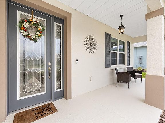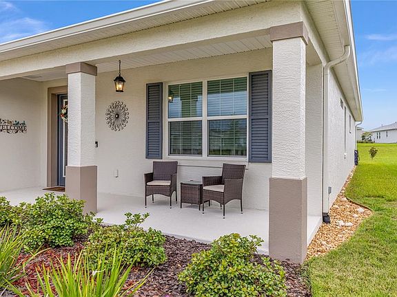 Motivated Seller! EXTENDED GARAGE AND LANAI! This beautifully upgraded Wisteria model Smart Home is located in the desirable 55+ community of Weybourne Landing at On Top of the World in Ocala, Florida. Situated on a lot with additional green space, this residence offers three bedrooms, two full bathrooms, and a two-car garage with a four-foot extension and epoxy flooring. Built with over $77,000 in builder upgrades plus additional after-market enhancements, this home is move-in ready. Interior features include luxury vinyl plank flooring throughout, quartz countertops in the kitchen and bathrooms, and upgraded cabinetry with dovetail drawers, soft-close doors, pull-outs, a lazy Susan, wine rack, and glass tile backsplash. The gourmet kitchen also features stainless steel appliances and a gas cooktop, creating a functional and well-designed cooking space. The primary suite offers a spacious retreat with a frameless glass shower, upgraded tile finishes, and custom mirrors. The extended covered lanai and paver patio provide comfortable outdoor living areas. A laundry room with built-in cabinets and a utility sink adds convenience. Additional highlights include a water softener system, upgraded front door, two solar tubes that add natural light, and smart home features such as an Ecobee thermostat, Hunter Hydrawise irrigation system, and keyless garage entry. Residents of Weybourne Landing enjoy resort-style amenities including a pool, dog park, pickleball courts, fitness equipment room/ weight room, and mini golf. This home offers modern design, quality finishes, and a desirable location within one of Ocala’s premier active adult communities. This home is priced to sell!!