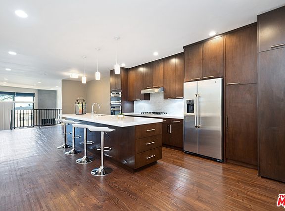 Perched above the Sunset Strip, on desirable Shoreham Drive, this spacious unit offers the perfect convergence of luxury and location. Fully renovated 2 bed / 2 bath unit with a functional open floor plan and recessed lighting throughout. Step down to your sizable sunken living room, where one can cozy up next to the fireplace, or step outdoors onto 1 of your 2 balconies here. Enjoy your primo view of our beloved city via the 8' Fleetwood sliding doors that open up to both balconies and offer a flood of cross-breeze into this light and airy space. Top-of-the-line Stainless Steel appliances outfit the kitchen, which boasts sleek Silestone counters, walnut cabinets, ample counter space and storage, and a 12' center island that can seat up to 6 - all perfect for your inner Chef. Full-sized side by side Washer and Dryer in unit help elevate the "home" factor in this luxe pad.