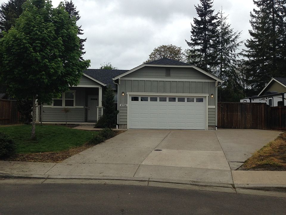 Three bedrooms, two bathroom home in desirable Veneta. stove, refrigerator, garbage disposal, dishwasher, microwave, carpets, window coverings, garage, fenced yard with RV-boat parking (fence encloses). Forced electric heat. One small pet considered with additional deposit.