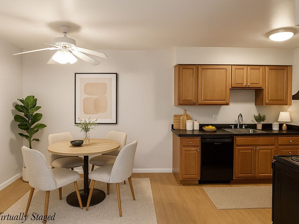 A flexible, open-concept floor plan with a dine-in kitchen that doubles as a work-from-home nook, An abundance of storage: walk-in closets plus your own lockable basement storage unit, Off-street parking in a large private lot, On-site coin laundry, Complimentary quarterly preventative pest control, Pet Friendly Community, Recent upgrades like new roofs and windows help keep your utility bills ultra-low.