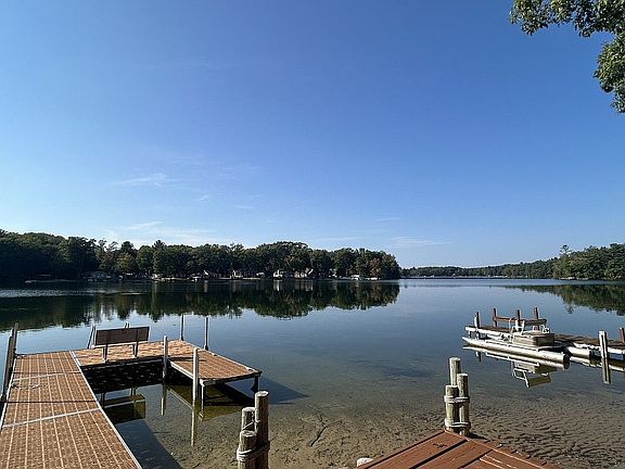 Lakefront Paradise with sandy beach area! Buyers agents welcome. FULLY FURNISHED 5 bedroom, 3 full bath, 2952 sq ft, finished basement with bar, brand new carpeting throughout, interior recently painted, includes newer 14’ Avalon pontoon with canopy, canvas cover, electric troll motor, 25hp, 4 stroke, Yamaha, (3) 6 gallon portable gas tanks, Garmin fish finder and submersible video camera, ping pong table and much much more!