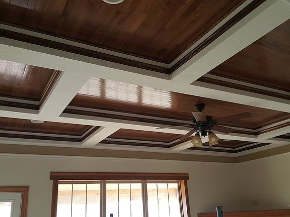 This home has a great open layout from the Kitchen to the Family room. The first floor has hardwood in the Kit, Breakfast area, Foyer, D/R and F/M. It has a covered Porch off the F/M which has a gas log FP. The coffered ceilings in the Kit & F/R are imbeded with hardwood.The Master Bed, on the 1st flr, has a Huge master shower and closet. Upstairs is a huge Loft, Den, 3-Large BR's and a bath. The walkout basement has rough-in plumbing for a 3 Pc bath.