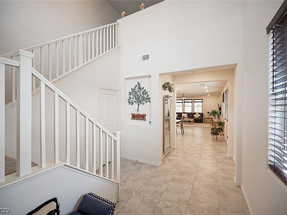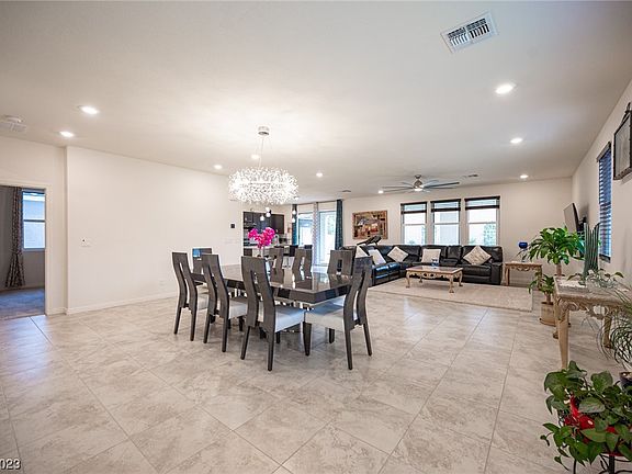 Convenient location in a gated community on the Southwest side of the town near Russell and 215 beltway. Close to freeway access, shopping, gaming, restaurants, commercial and retail space. Includes backyard gazebo and shed. Tamper-proof security screen door and windows downstair and security windows film upstair. Beautiful second-floor balcony that overlooks the backyard mini golf course. Will include the storage shelves, kitchen high stool, an elegant contemporary 8-seats dining table, and a master room 65" wall mounted TV.
