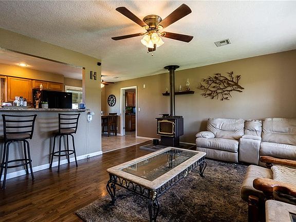 Adorable starter home! 2 bedrooms, 1 bath, maintenance free exterior home on almost an acre (.83). True hardwood flooring that can be sanded & refinished with vinyl & tile in the wet areas. A Harmon wood stove in the living area will heat the entire home in the winter, reducing the need to refill the propane tank. Eat in kitchen is open to the living area and offers updated appliances, along with tons of storage space & prep area for cooking. Office area built in to utility room makes it perfect for working from home with the high speed internet that's available. Covered patio is great for evening gatherings with friends. Partially fenced backyard for the dogs. 1 car garage & 10x14 Storage building. Paved road. Window AC in bedroom will convey-it's used to stay super cold when you sleep!
