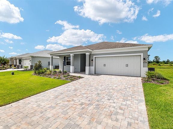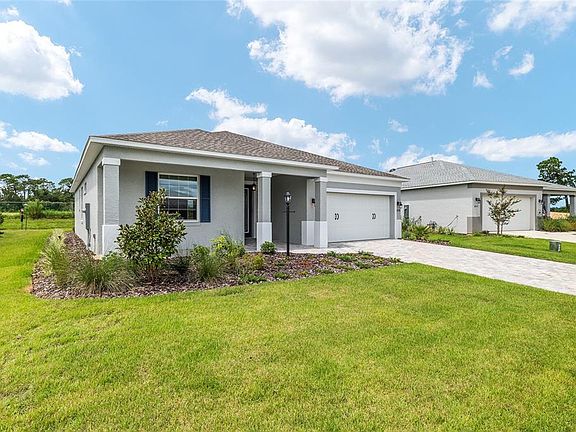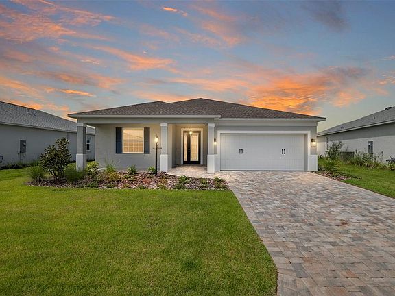 Step inside this brand-new never lived in Ginger model in Weybourne Landing on a Private Lot - available now due to an unexpected change in the owner's circumstances. This 2 bedroom, 2 bath home with a versatile flex room and 2-car garage shows better than a model, with countless upgrades and thoughtful finishes throughout. The sophisticated kitchen features staggered dovetail cabinets with soft-close drawers, a designer island, quartz countertops, a stylish tile backsplash, and stainless-steel appliances. The great room with tray ceiling and crown molding flows seamlessly with the flex room for an open and elegant feel. Upgraded electrical package, custom paint, LVP and tile throughout (no carpet) add to the appeal. The luxurious primary suite includes tray ceiling, crown molding, dual vanities and a walk-in shower with ceiling-height tile and bench. Outdoor living is equally impressive with a screened lanai overlooking a private lot that backs up to conservation land with an eagle nest, plus a knee-high wall ready to support windows if enclosed. Additional highlights: paver driveway, upgraded front door, water softener plumbing, and golf cart electric. Weybourne amenities include curbside waste collection, miniature golf, pickleball, pool, fitness center, and clubhouse - with optional access to full On Top of the World amenities. A rare opportunity for a move-in ready new build without the wait!