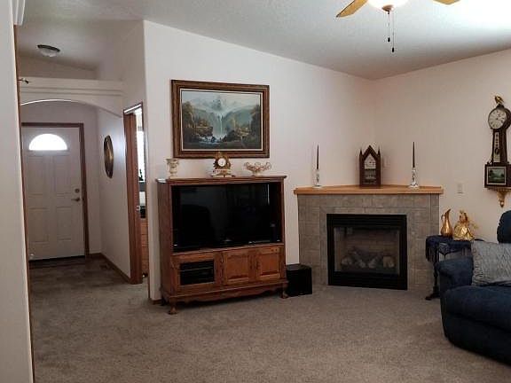 Spacious home in Golden Spike 55+ Community with unique floorplan. Home has a large living room with Gas FP and a family room off the dining, which could be utilized as another formal dining area or walled off for another bedroom or room of choice. Master is spacious w/jetted tub & walk-in shower w/nice walk-in closet. Guest bedroom has a spacious walk-in closet also. Home has a great bonus space accessible from the garage that is used as a workshop, but is included in SF of home, as it is over the crawl space and has AC & heat, as well as a deep sink. Lots of storage and home is in pristine condition. From covered back porch, it has great view of Rathdrum Mountain, has a BBQ stub and BBQ can be included, fence & sprinkler. Htd Drive and wifi antennae. All GSE Amenities included.