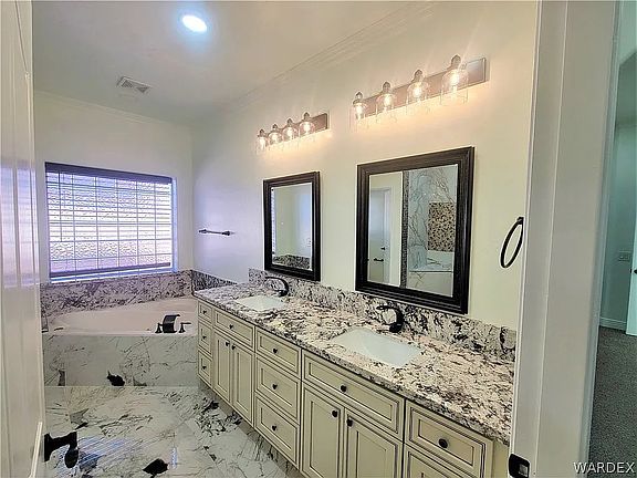 Located in the exclusive Cerbat Cliffs Golf Course area. Property borders the Golf Course. Three bedrooms, two full bathrooms. Fully furnished. Master suite with large private bath. Three car garage (two available). Area on side of house for motorhome or RV (No hookups). House recently remodeled. Close to Kingman Hospital and shopping but on a quiet low traffic street. New stove and refrigerator. Washer/Dryer. Pets may be allowed at owner's discretion.
