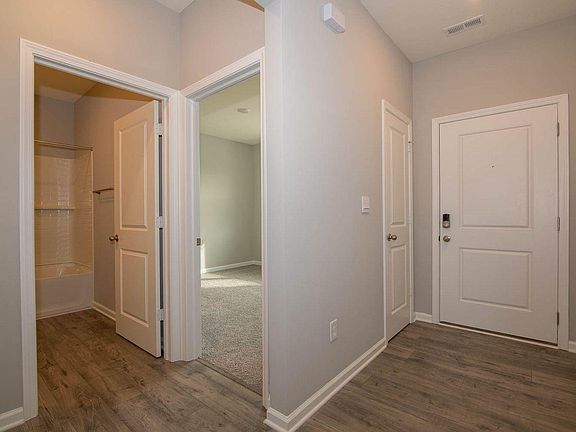 Common hall bathCovered front porchPrimary bedroom with double-vanityBeautiful view of pondSs appliancesLarge walk-in closetWalk-in shower