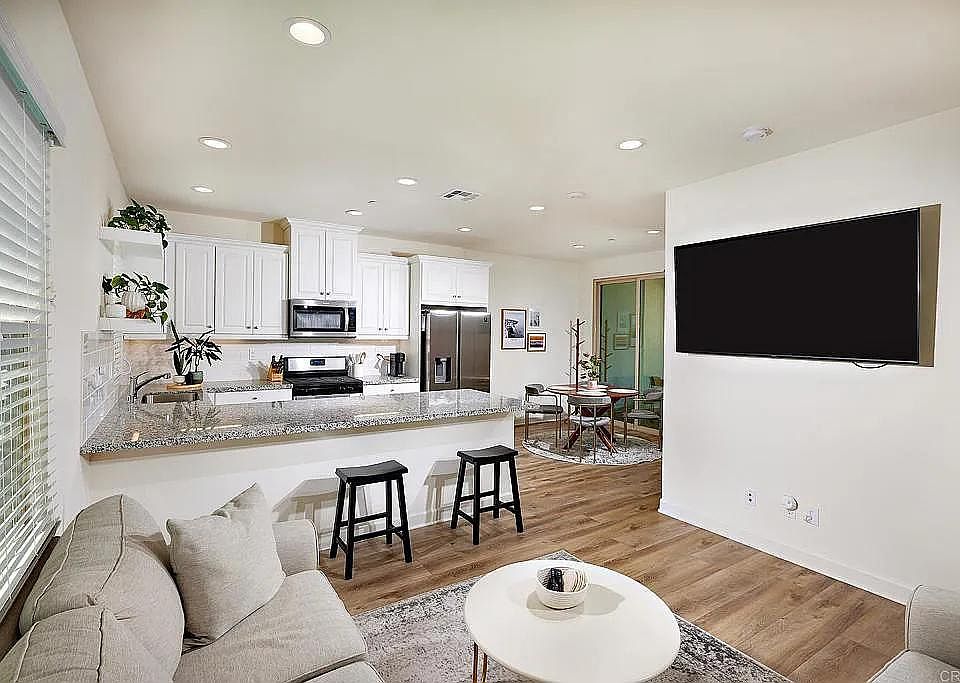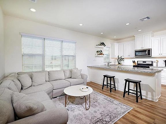 Welcome to Rancho Tesoro! This gorgeous move-in ready townhome built in 2021 features 2 spacious bedrooms & 2.5 bathrooms, with an upgraded kitchen & open floor plan. The primary suite has an en suite bathroom and walk-in closet. Second bedroom has its own bathroom and closet with built-in shelves. Highlights of this home include an attached 2-car garage, upgraded plank flooring, smart home capabilities, solar, upstairs laundry room with large capacity washer/dryer, an indoor/outdoor patio, energy efficient vinyl windows, energy efficient tankless water heater, and designated pantry. Your new community has a resort style pool, BBQ, playground, two lakes within walking distance, and acres of hiking and mountain biking trails just outside the gate. Only 5 minutes from Double Peak School, and CSUSM is just down street; 10 minutes to San Elijo town center and San Marcos North City. Quick access to highway 78 and I-15.