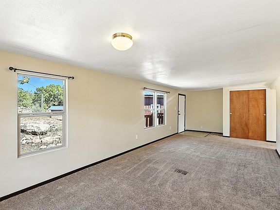 AFFORDABLE Secluded mountain home! 3 bedrooms, 2 bathrooms. $240,000 Updated double-wide mobile home in Las Huertas Canyon of Placitas. Redone kitchen and bathrooms. Granite countertops, oak cabinets, propane gas range. Freshly painted. Large, energy efficient, double-pane windows. Forced-air propane heat. Evaporative cooler. Carpeted bedrooms and living room, vinyl flooring. Nice front and back decks. Big view of the Crest of Montezuma to the east. Close to National Forest. Quiet, rural neighborhood, but only minutes to I-25 on Highway 165. Storage shed behind the home. Chickens and livestock allowed. Private well with storage tank. Septic system already passed inspection. Pro-panel exterior, coated metal roof. Owner financing available w/ 20% down, 7% interest 20 year amortization.