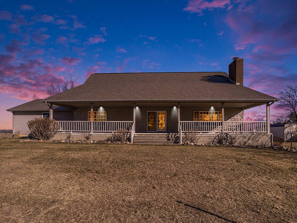 Beautiful home on All Sports Matteson Lake. Matteson Lake is a 300+ acre lake.  Great water sports, skiing, swimming, fishing! Open concept living with large sunny windows and lake views. The living room boasts a beautiful brick fireplace, and french doors to the amazing lakeside covered porch.  Quality built home, 3 large bedrooms, 2 full baths ( en-suite master) In addition to the upstairs bedroom, is an open loft, with lake views.  Very versatile space.  Main level laundry.  Attached 2 car garage, plus a bonus garage with a carport.  Beautiful landscaping, seawall, generator.  Move in ready, immediate occupancy to start living the lake life!