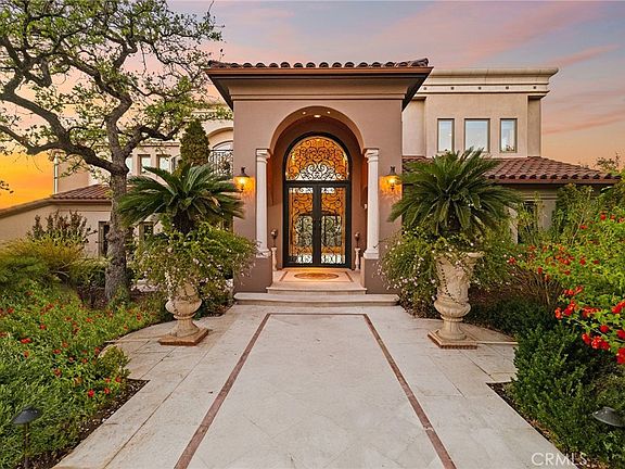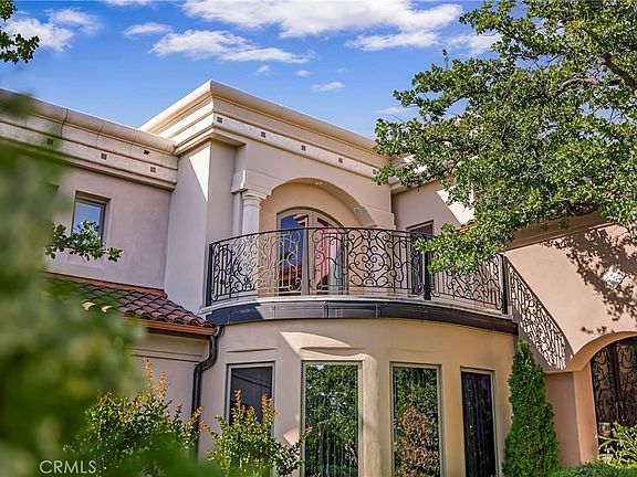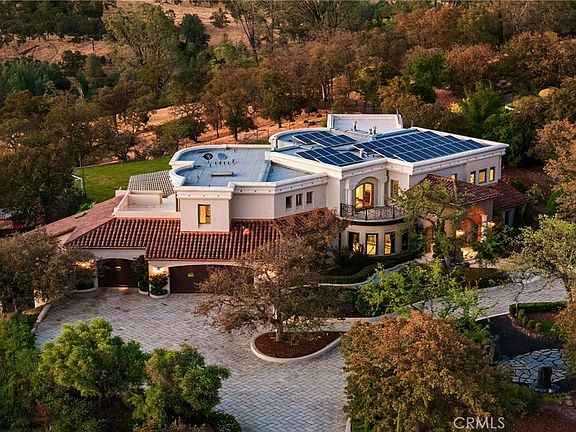 Gracefully set on 1.2 acres in the exclusive Canyon Oaks Country Club, this Mediterranean-inspired estate is a rare expression of enduring beauty and refined living. Thoughtfully envisioned by its original owners and masterfully built by renowned custom homebuilder Michael Gali, the residence captures the essence of architectural sophistication, elevated comfort, and seamless integration with its natural surroundings. Nestled along the boundary of Upper Bidwell Park, the property has direct access to the South Rim Trail, offering unobstructed entry to Chico’s most iconic landscapes. A welcoming circular driveway, gracefully created with granite pavers, winds through the property and sets the tone for a truly unforgettable arrival. An inviting storybook-style balcony, poised beside a majestic covered entrance, evokes the feeling of timeless grandeur. Inside, a dramatic foyer reveals soaring ceilings, a sweeping spiral staircase, and radiant light dancing across Italian marble floors. The Great Room features striking rotunda windows with panoramic canyon views, seamlessly blending the indoors with nature. The chef’s kitchen boasts all-Viking appliances, a double oven, and bespoke mahogany cabinetry. Four spacious bedrooms and four-and-a-half baths include a primary suite with private terrace, sunken palatial tub framed by marble columns, and dual showers offering floor-to-ceiling views-an unforgettable start or end to any day. An ambient mezzanine connects the home’s wings, while a richly appointed library features a fireplace, built-ins, and terrace access. A three-car tiled garage blends style with practicality. Modern amenities abound: a private theater, five fireplaces, radiant floor heating, Lutron drapes, smart lighting, surround sound, water softener, and owned solar ensure comfort and efficiency. Outdoors, enjoy a shimmering pool, multiple verandas, a poolside bath and designer shower. A separate steam room offers a luxurious spa-like escape, perfect for relaxing after a hike or a day on the green. Evenings are best savored from the rooftop terrace, where breathtaking canyon and sunset views stretch endlessly across the horizon. Whether enjoying intimate conversation under starlit skies or selecting a vintage bottle from the in-ground, temperature-controlled wine cellar, the experience is nothing short of magical—designed to elevate daily living into something extraordinary. A true haven, this sanctuary blends fine craftsmanship with timeless beauty.