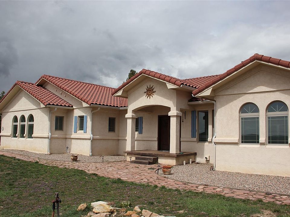 Almost Heaven....Signal Mountain! Don't miss this Spacious Hacienda Style Rancher! GREEN BUILT THERMAL MASS CONSTRUCTION! Many upgrades & Energy Efficiency features. Upon entering you find beautiful imported Mexico wood doors. Great Room feat. beamed ceiling, Beautiful Stone Fireplace,Tray Ceilings,Plenty of windows to enjoy the views. Kitchen feat. Cherrywood cabinets, granite counter tops, custom tiles & a British AGA gas stove. Master Bedroom has a sitting/reading nook, French Doors leading to the spacious wrap around Trex deck, Bath w/raised vanities, large walk-in shower, walk-in closet. RADIANT HEATED FLOORS w/zones. Thermopane Anderson windows, Walkout unfin. bsmt. w/Bath rough out. Hot Water on Demand. Signal Mountain Ranch has a central water system in place, a gated electronic entrance & is a 25 min drive to Pueblo, 15 min to Beulah Mountain Park & Trails.