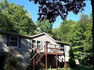 Country setting on 5 acres with lots of wildlife, fixer upper, materials and supplies to complete repairs are with property and will stay, 1 bath and 1 bedroom are remodeled, roof - 2 yrs. old, full basement, double wide, woodburner (coal and wood) will stay, metal storage shed and trailer to stay, security safe will stay (in closet), keybox on entry gate