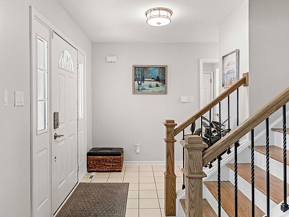 Welcome to this beautifully maintained 3-bedroom, 2.5-bath, two-story home, nestled in a peaceful cul-de-sac. Step inside to find a recently updated kitchen featuring elegant quartz countertops and premium stainless appliances, perfect for your culinary adventures. The main floor offers a cozy great room with a fireplace, a separate dining room, and a comfortable living room. Relax in the enclosed sunroom, which provides a lovely view of the serene wooded backyard. This home is thoughtfully upgraded with a new washer/dryer, an updated main bathroom and powder room, and new interior doors throughout. Each bedroom boasts custom closet organizers, and plush new carpet was added just six months ago. Discover a bonus finished room in the basement, ideal for your personal retreat or office space. Heated and A/C in the garage which includes a 250 V EV Car Charger. BRAND NEW ROOF and GUTTERS