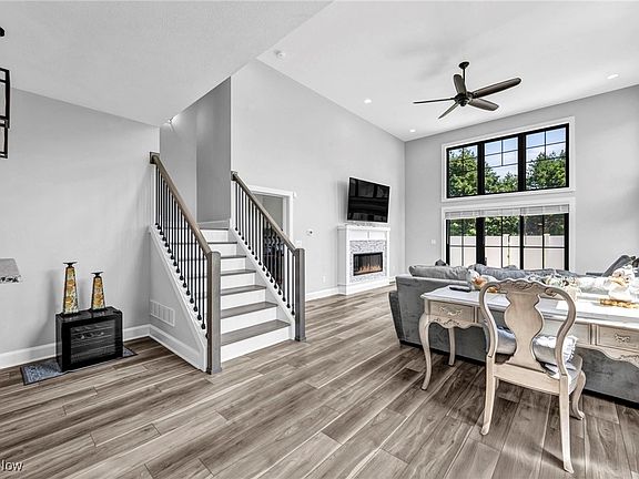the door, you’re greeted by soaring two-story ceilings and a dramatic