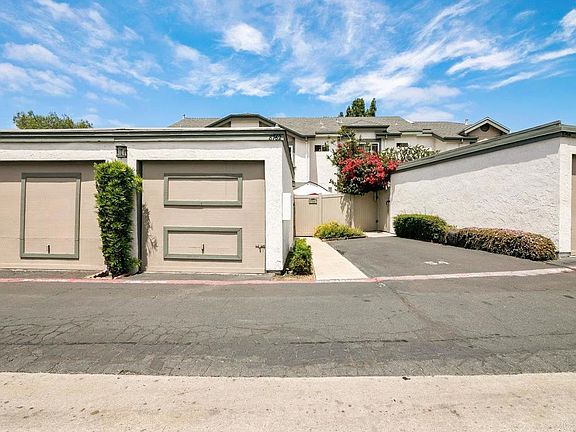 Enter this warm and inviting home where you can enjoy having the window/doors open for a warm or cool breeze; the owners say they rarely turn on the AC or heater. The skylight window can be opened via smartphone app to accommodate any weather. You can be at the pool within a minute or two. This unit has one of the largest backyards and also a front patio. Each bedroom has an ensuite bathroom. The primary bedroom is large and has a balcony overlooking the pool area. It also features a storage/loft that provides more than enough storage space or even a small room to those who need it. The living room features a wood burning fireplace and view to the backyard. There is new tile in the hallways, kitchen, and bathrooms and newly upgraded double paned windows throughout house (sliding doors are not new). The high ceilings give you an open and spacious feeling. The garage offers good car storage or even a workshop for hobbies. The HOA is proactive on maintenance and improvements to the community, recent improvements include landscaping, recently painted exteriors, roofing was recently inspected and minor repairs, repainting of the pool/hot tub and clubhouse area, dog park area behind pool house, tree trimmings. and plan to redo the asphalt for the entire community in the near future. The landscaping provides an array of plant life and is well maintained. Recently renovated club house. 20 min drive to downtown or the beach.