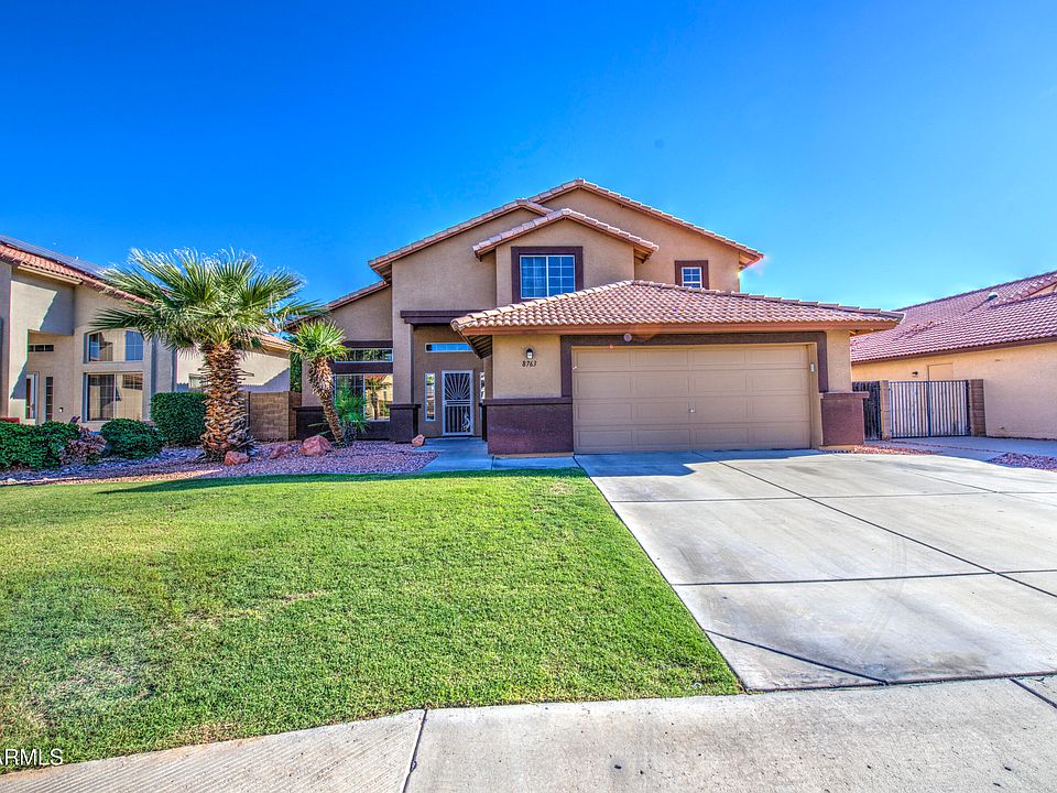 Absolutely stunning, immaculate, and move-in ready home in Peoria. Fantastic curb appeal and attractive landscaping. Step inside to an elegant entryway. The home has an open floor plan with large, separate living & family rooms, 4 spacious bedrooms, a den, and 3 full bathrooms. Your new kitchen has island, recessed lighting, breakfast bar, quartz countertops, stainless steel appliances, and contemporary cabinets with lots of storage space. Primary Bath has walk in closet, 2nd closet, garden tub, separate shower. private toilet room, & double sink vanity. Covered patio in the backyard. Vaulted ceilings. New flooring & paint. Come see this beauty for yourself! You won't be disappointed.