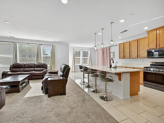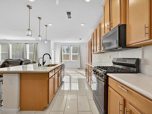 Discover modern comfort & timeless style in this beautifully crafted Paloma floor plan by Taylor Morrison, nestled within Vineyard's highly sought-after Caselman Ranch community. Built in 2016, this spacious two story home offers over 3,000 sq. ft. of thoughtfully designed living space, featuring 5 bedrooms, 3 full bathrooms, & two flexible dens that can be converted to additional bedrooms if desired. Designed for both comfort & style, the open concept layout invites connection and flow. The gourmet kitchen highlights premium quartz countertops, a generous center island, stainless steel appliances, & elegant porcelain tile flooring extending through the entry, hallway, & kitchen. Downstairs, a full bedroom & bathroom provide convenience for guests or multigenerational living, while the upstairs layout offers privacy & room to grow. Peacefully situated right across from the community's beautiful park, this home offers the perfect setting for morning walks, weekend picnics, & everyday enjoyment. The neighborhood is friendly & inviting, located within the award winning Elk Grove Unified School District & just minutes from shopping, dining, & entertainment. This Caselman Ranch gem combines comfort & charm, creating a space that feels welcoming, versatile, & truly at home.