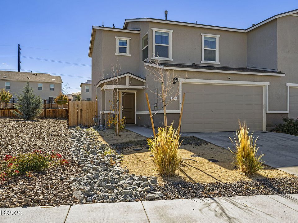 One of the BEST locations in the community, this 3 yr old townhome sits next to the common area to the side and backs to open space (no neighbors on 3 sides!) PLUS it faces south with a view of Peavine Mountain! The design is modern living at its best and includes a open great room concept, laundry room upstairs with the bedrooms, keyless door entry, laminate on first level, tankless gas water heater, smart thermostat & more. The owner has landscaped the backyard with a large pavered patio with built-in drains and faux grass. It has view-fencing to take advantage of the open space in the back. Easy to maintain and close to parks, shopping, mountains and more!