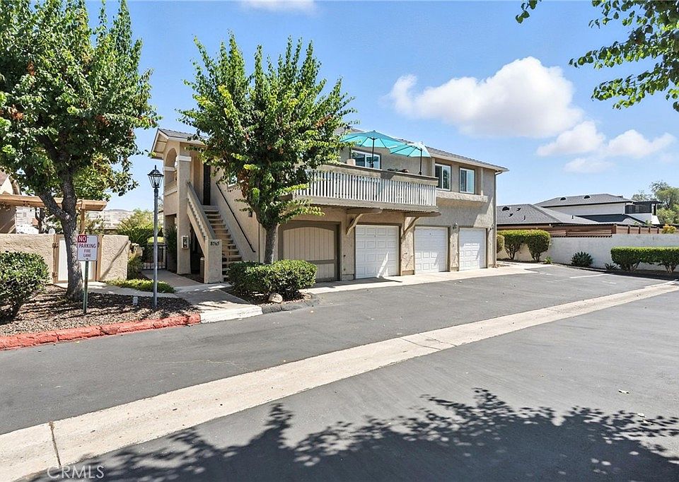 Welcome to Crossway Ct! This charming upper-unit condo is located in the Mission Martinique community and has been recently renovated, making it turnkey. This warm and inviting home features 2 bedrooms, 2 bathrooms, and 945 sq. ft. of living space, along with a one-car garage. The kitchen has been recently updated with gorgeous cabinetry that offers ample storage, including self-closing cabinets and drawers. It boasts modern quartz countertops and stainless-steel appliances, with the refrigerator included in the sale. The kitchen also features a tray ceiling and recessed lighting. Adjacent to the kitchen, the dining area provides slider access to a spacious balcony that is larger than average. Laminate flooring flows seamlessly into the living area. The primary bedroom includes a walk-in closet and an en-suite bathroom with a tub/shower, new toilet, and new fixtures. The secondary bedroom is located across from the guest bathroom, which features a shower and includes a stackable washer and dryer included in the sale. Additional upgrades include new slider and dual-pane windows throughout, new plantation shutters, and a new HVAC system. The one-car garage is directly below the unit and has a new garage door. The community pool is nearby for your enjoyment. Come check out this turnkey home!