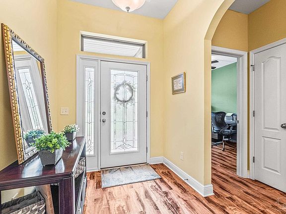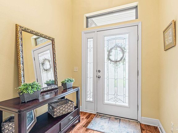 Welcome to this stunning highly customized home located in the Nature Trail community. Nature Trail is a 24-hour guard-gated community. This home offers both security and tranquility. As you walk through the living space, you will see all the upgrades you would want are already here. This modern home boasts several energy-efficient features, including solar panels that have already been paid for. Tesla Batteries and spray foam insulation in the attic, which provides added insulation and helps maintain a comfortable indoor temperature year-round. As a result, you can enjoy the benefits of reduced electrical costs, which averages around $31 per month. Additionally, the tankless gas water heater ensures a continuous supply of hot water while saving energy. The kitchen is enhanced by a rope light, creating a welcoming and cozy atmosphere along with upgraded Kenmore Elite appliances. Located on a cul-de-sac, this home offers a quiet and private setting. The backyard is bordered by a green belt, providing an extra level of privacy and creating a serene and peaceful atmosphere. Step into the master bathroom and discover a true oasis. Complete with a jetted tub, this bathroom offers the perfect spot to unwind and relax after a long day. The master shower is also equipped with three shower heads, providing a luxurious bathing experience. The master bedroom upgraded closet is equipped with custom organizer shelves. In the second bathroom, you'll find a tile shower and a pocket door for added convenience. All bedrooms in this home are equipped with ceiling fans, ensuring optimal comfort throughout. Furthermore, there is no carpet in the house, offering a clean and low-maintenance living environment. Step outside to the backyard patio and discover a delightful fireplace, perfect for relaxing evenings or entertaining guests. The custom plantation shutters on all the windows add a touch of elegance and allow for privacy and light control. Garage is Pre-wired for an EV charger