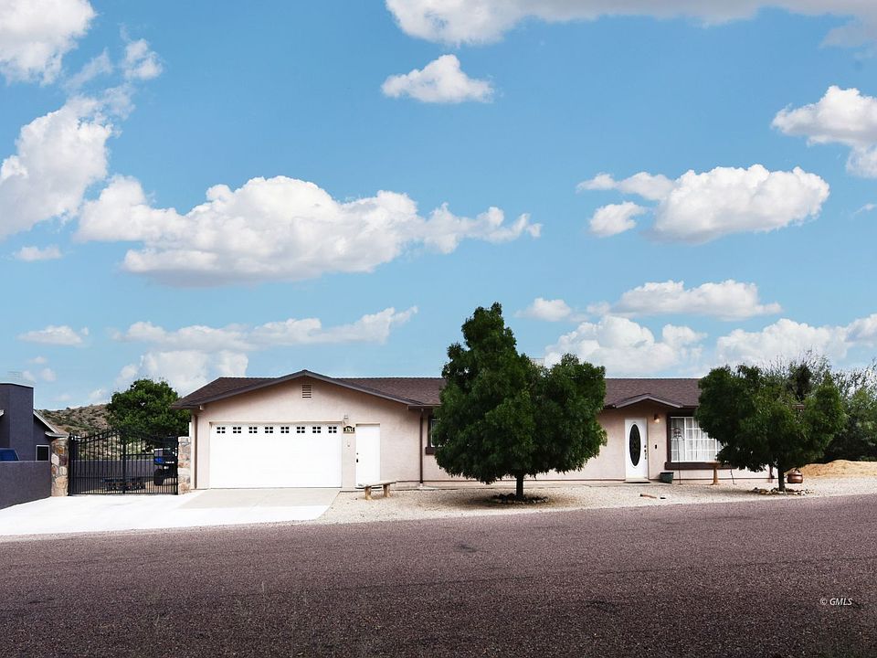 You will love this Four Bedroom, three bathroom home with two separate garages. One garage is attached to the home for two of your cars with room for a workshop. The second freestanding garage has a roll up garage door for your side by side and room for storage. The kitchen is newly remodeled. The open floor plan living-dining-kitchen area is great for entertaining. The kitchen has plenty of storage with a large separate pantry. The backyard is surrounded by a beautiful rock wall and the patio has three fans to cool you off. Green grass is always on point because of the sprinkler system. There is a wall mount for a large screen T.V. so you can watch football outside! Bring your game cameras so you can watch all the animals nearby.