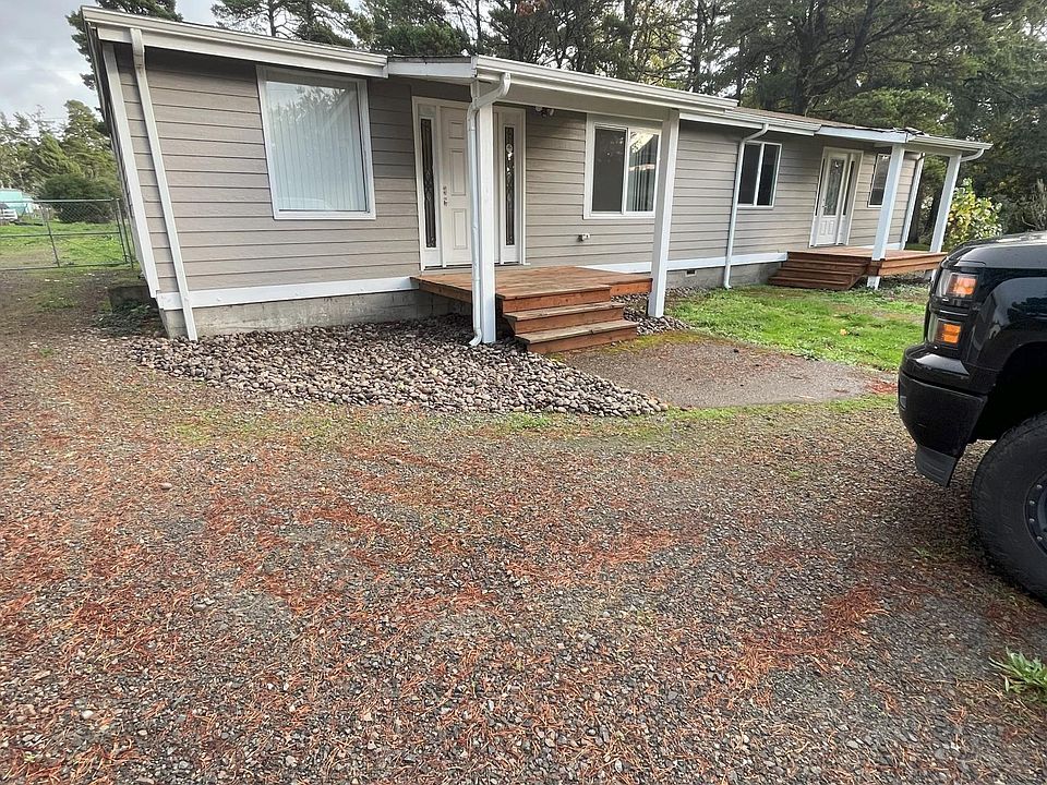 Newly Renovated Duplex on the North side of Florence. Across the street from Heceta Beach Road. Washer and dryer on site. Large open lot behind it with lots of green space. All one level living with covered front and back entrances.
