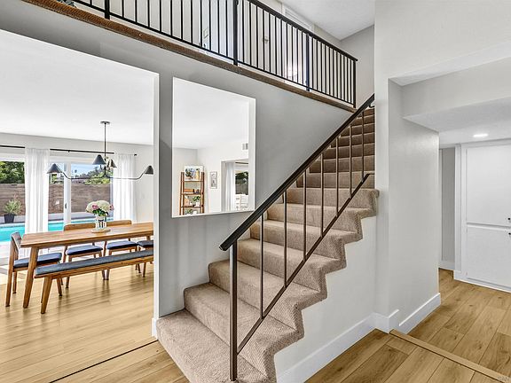 Modern comfort meets California living in this beautifully updated San Carlos home, where soaring ceilings, natural light, and a resort-style backyard come together seamlessly. A dramatic vaulted entry opens to an airy floor plan with a renovated kitchen and baths featuring quartz countertops, custom cabinetry, and stainless appliances. Updated vinyl plank flooring, dual-pane windows, new AC and Nest thermostat add modern comfort throughout. Over $30k of recent upgrades include a backyard turf dog run, new front yard turf and hardscape, and a completely refinished 3-car garage with added attic storage and epoxy floors. The backyard is a true oasis with a refinished pool and scenic views. Offering 4 bedrooms and 3 bathrooms across 2,606 sq ft—with flexible main-level space for a potential 5th bedroom—this home is perfectly situated near La Mesita Park, YMCA, Parkway Middle, Lake Murray, Cowles Mountain, Mission Trails Golf Course, shopping, dining and freeway access. Move-in ready in one of San Carlos’s most desirable neighborhoods!