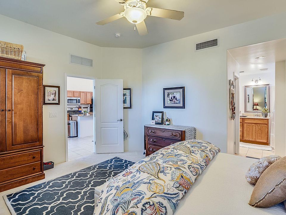 A little oasis in the highly desirable private gated community of Barrio Solana. This beautiful bright and airy home has 3 bed/ 2 bath and is ready for you to move in! N/S Exposure, High Ceilings, Split Floor Plan, Kitchen SS Appliances, Granite Countertops in Kitchen w/tile Backsplash. Granite Island w/breakfast bar. Large Master Bedroom with two closets, Bath w/ Dual Sinks and Walk in Shower. Double Doors to 3rd Bedroom that can easily be a Home Office or Den. Huge backyard with pavers and pristine landscaping. All of this located close to Great Dining, Shopping, Parks, World-class hiking and Golf just minutes away.