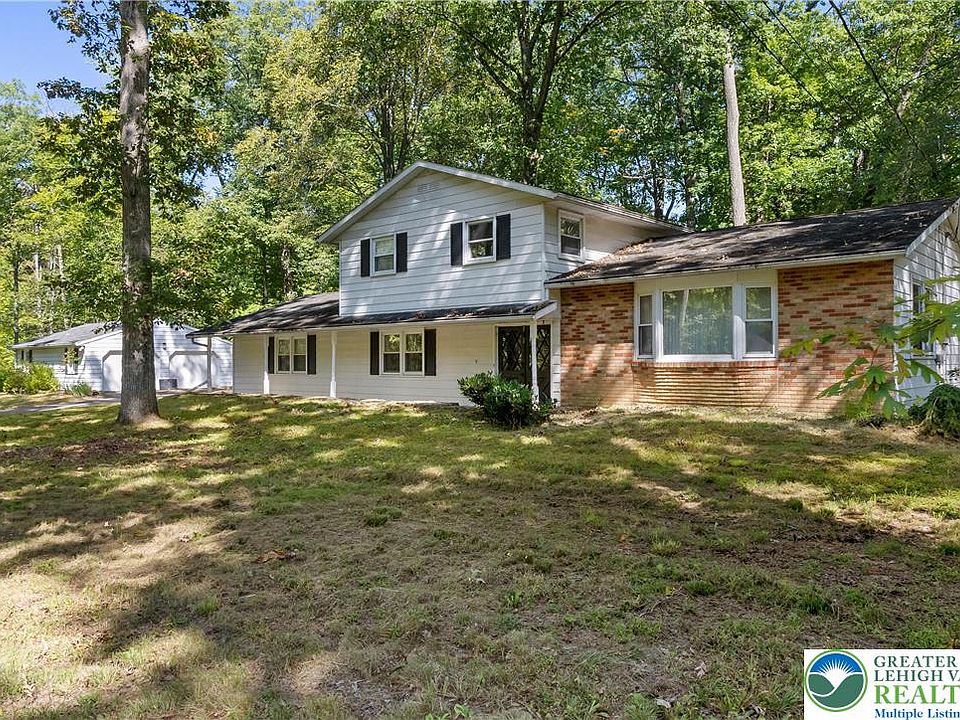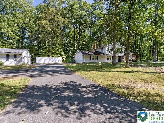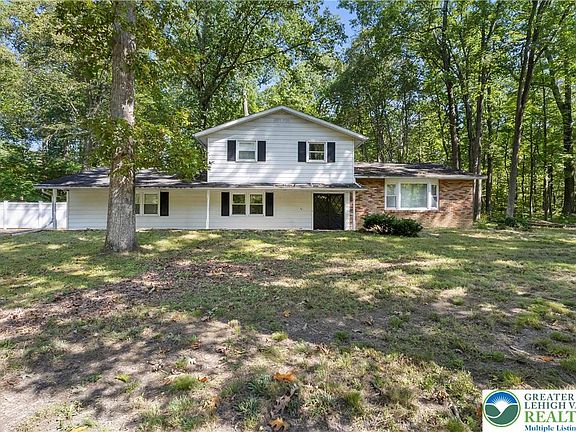 Privacy and space define this inviting 5 Bedroom Split Level, set on nearly 3 acres of flat and wooded land in the highly desirable Southern Lehigh School District. The well-designed layout features a bright living room, den/study, and a welcoming family room anchored by a double-sided fireplace that also enhances the first-floor primary suite. The suite offers a spacious walk-in closet and full bath with sunken tub, creating a private retreat. The kitchen blends functional beauty with a view of the gorgeous grounds, making everyday living and entertaining a pleasure. Three additional bedrooms and two more full baths provide plenty of room for family or guests. Radiant heat and central air ensure year-round comfort. This home offers a very solid foundation, with plenty of opportunity for a new owner to bring their ideas! Additional highlights include a full basement with sump pumps, an oversized two-car garage, and a large shed for storage. This home presents an excellent opportunity for a new owner to update to today’s style and make it their own. Surrounded by wooded privacy yet just minutes from major routes, this rare property combines a serene setting with everyday convenience—an exceptional chance to create your dream home in a sought-after location.