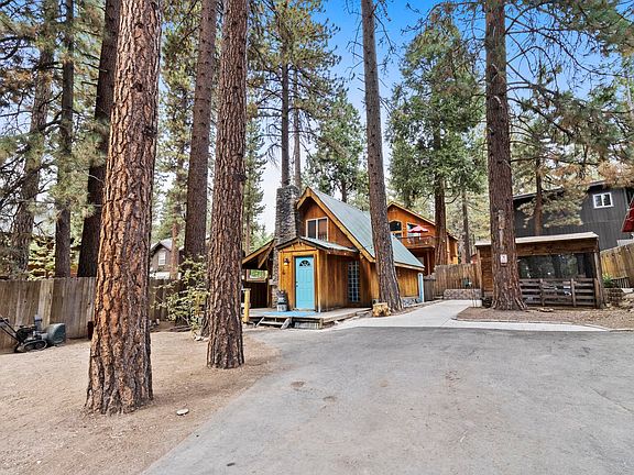 This home sits on a fenced-in area of land that includes two lots: 8769 and 8779 Trout Ave (APN #'s 090-181-089-000 AND 090-181-088-000) being sold together. Located near the end of Trout Ave in charming Kings Beach. This property is walking distance to the lake (less than half a mile to the Kings Beach State Recreation Area), shops and restaurants, Kings Beach Elementary School, and less than 10 miles to the Northstar Ski Resort. This 2 bedroom, 1 full bath, fully fenced-in property situated on two lots boasts the potential for growth, or the opportunity to enjoy cozy cabin life amongst the trees. This home has a metal pitched roof, a mud room entryway that leads to the living room with a wood burning fireplace, and stainless steel appliances in the kitchen. Both bedrooms are located upstairs, with custom built-in drawers in the primary bedroom, as well as at the top of the stairs between the bedrooms. Note that the second bedroom does not have an entry door. Outside you will have plenty of space for entertaining and room for the kids and pets to play in the front yard, as well as a large hot tub with buit-in stairs and railing for easy entry. An attached storage room is located at the rear of the home for additional space to store all of your summer and winter gear. In addition to the attached storage room, there is also a stand alone storage shed by the hot tub, great for storing more gear, tools, etc. The covered walkway on the left side of the house provides even more storage space and leads to the laundry closet (with newer all in one W/D unit) at the rear left side of the house.The large fenced-in, front yard includes a long driveway (see aerial photos) with a rollaway gate to accommodate privacy and parking for all of your toys (camper, boat, jet ski's, etc).
