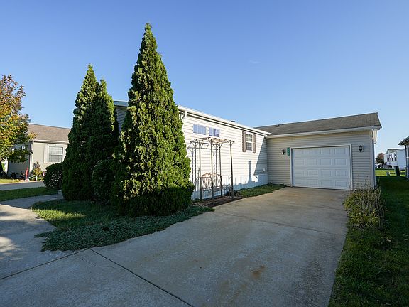 Well-maintained 2 bedroom, 2 bath Fleetwood mobile home with attached garage located in the Oak Ridge 55+ community. The kitchen features a spacious eat-in area with bay window, center island with storage and electric, and ample cabinetry. The primary suite offers a private bath. Cozy up to the Soapstone wood-burning fireplace that keeps the home warm and toasty. Enjoy the lovely yard with a metal gazebo and arbor with bench - both included with the home. Being sold as is.